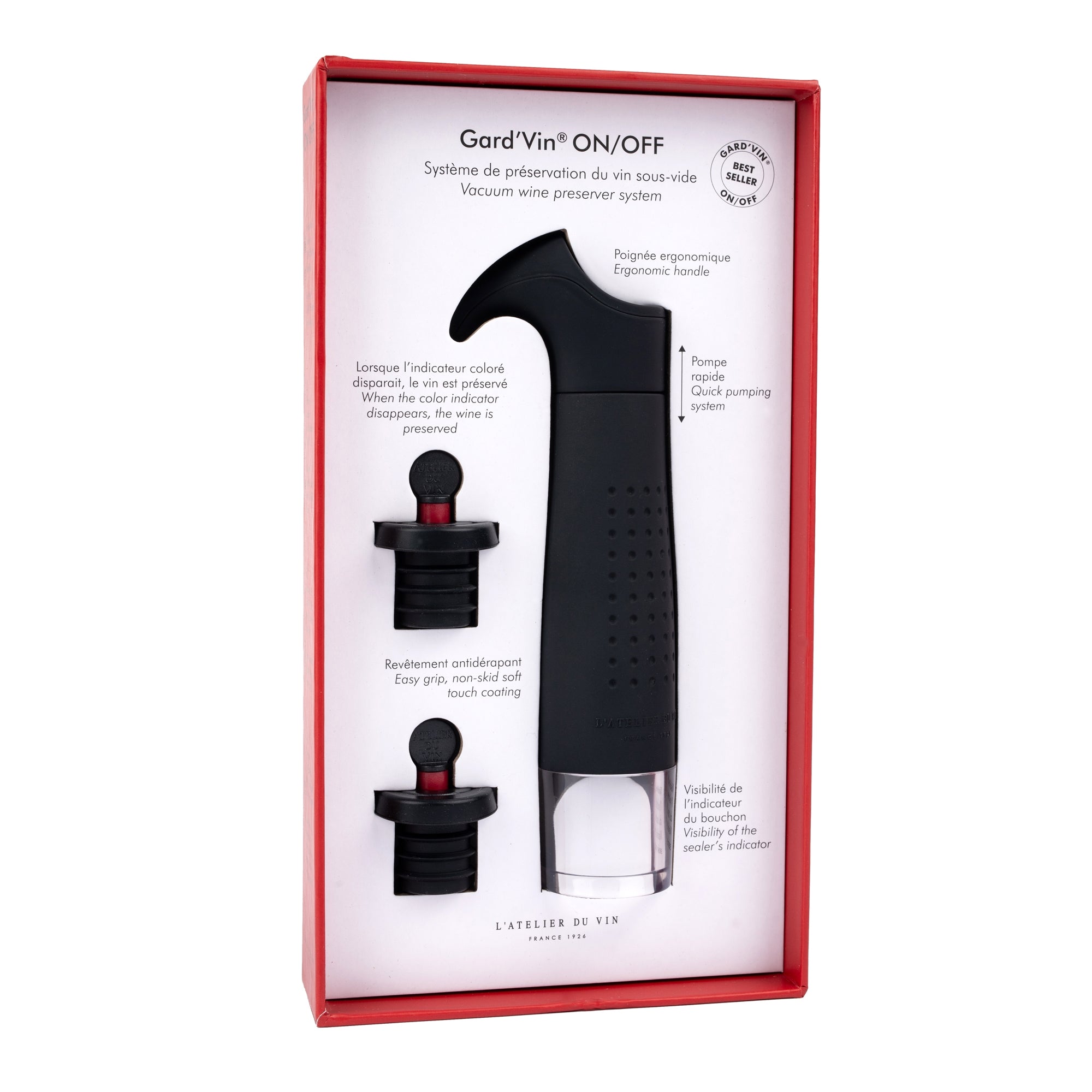 Besoin vital de faire le vide. Refus de rendre l’âme du vin. La pompe à vide Gard’Vin On/Off et son bouchon indicateur assurent la conservation optimale d’un vin…