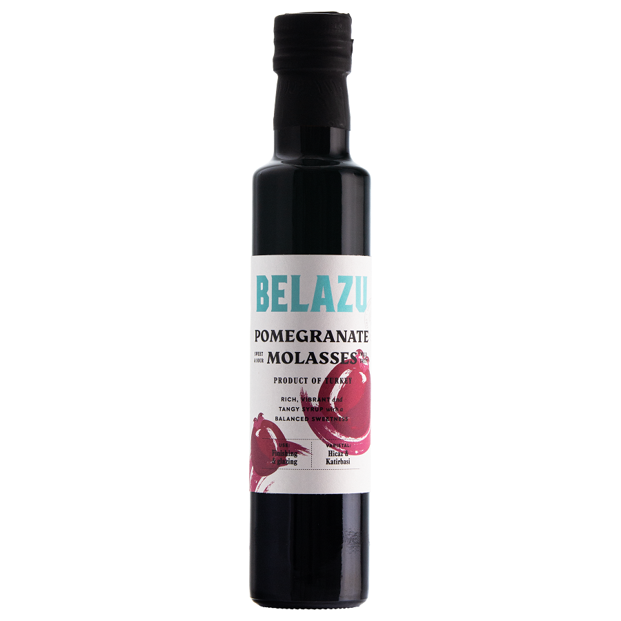 La mélasse de grenade de la maison Belazu est un condiment emblématique de la cuisine du Moyen-Orient. Obtenue à partir de jus de grenade lentement réduit, elle développe une saveur intense, à la fois acidulée, fruitée et légèrement sucrée, qui apporte profondeur et fraîcheur aux plats.