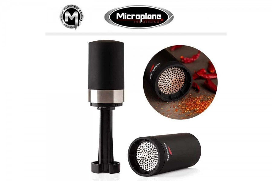 Avec ce moulin à piments de Microplane, il devient facile de broyer de façon précise et sans efforts vos piments séchés.