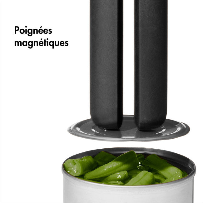Pratique et sûr, utilisez les poignées magnétiques pour soulever les couvercles et les jeter sans les mains ! Antidérapant, vous vous sentirez en toute confiance pour manipuler les couvercles.