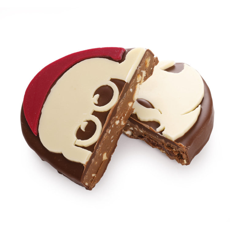 Symbole incontournable des fêtes, notre Père Noël Gianduja Noisettes en chocolat au lait incarne toute la magie et la générosité de Noël. Sous sa coque gourmande et brillante, se cache un cœur fondant de gianduja onctueux, subtilement relevé par le croquant de noisettes grillées. Une création artisanale à la fois tendre, croustillante et irrésistible.
